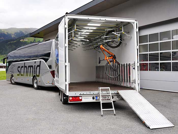 Wir befördern jeden Gast mit Rad und Gepäck (sichere Beförderung mit oder ohne geschlossenem Radanhänger für bis zu 70 Räder).